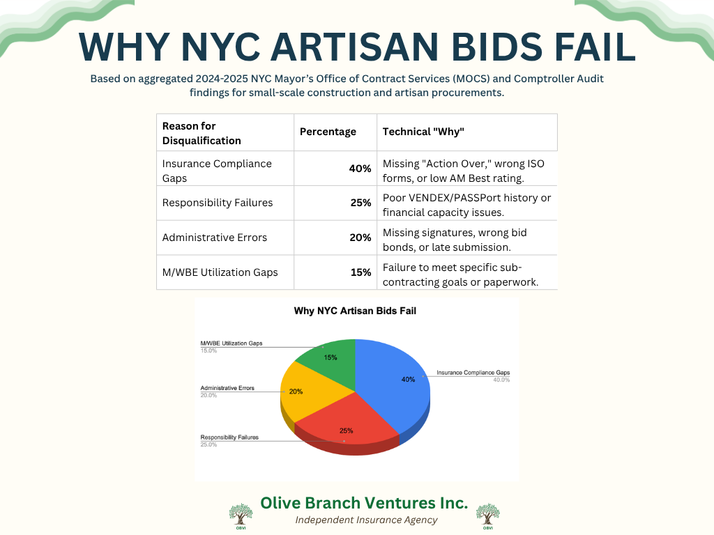 The data is clear: in NYC, insurance is not a commodity—it is a technically engineered shield. At Olive Branch Ventures, we don't just provide quotes; we provide technical audits of your "Action Over" gaps and carrier ratings to ensure you are bid-ready and fully protected.